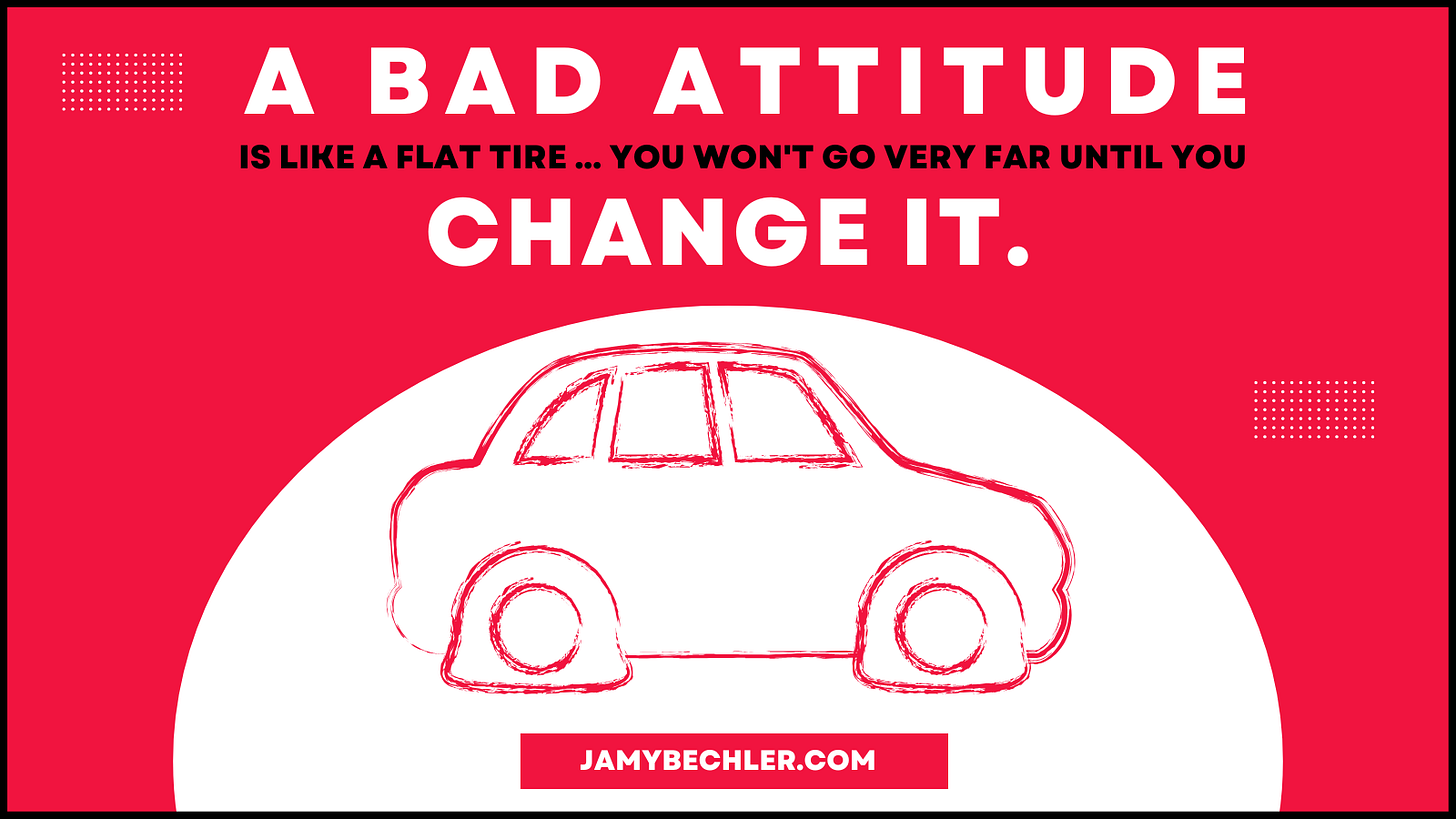 Just remember that “A bad attitude can be like a flat tire. We won’t get very far until we change it.”